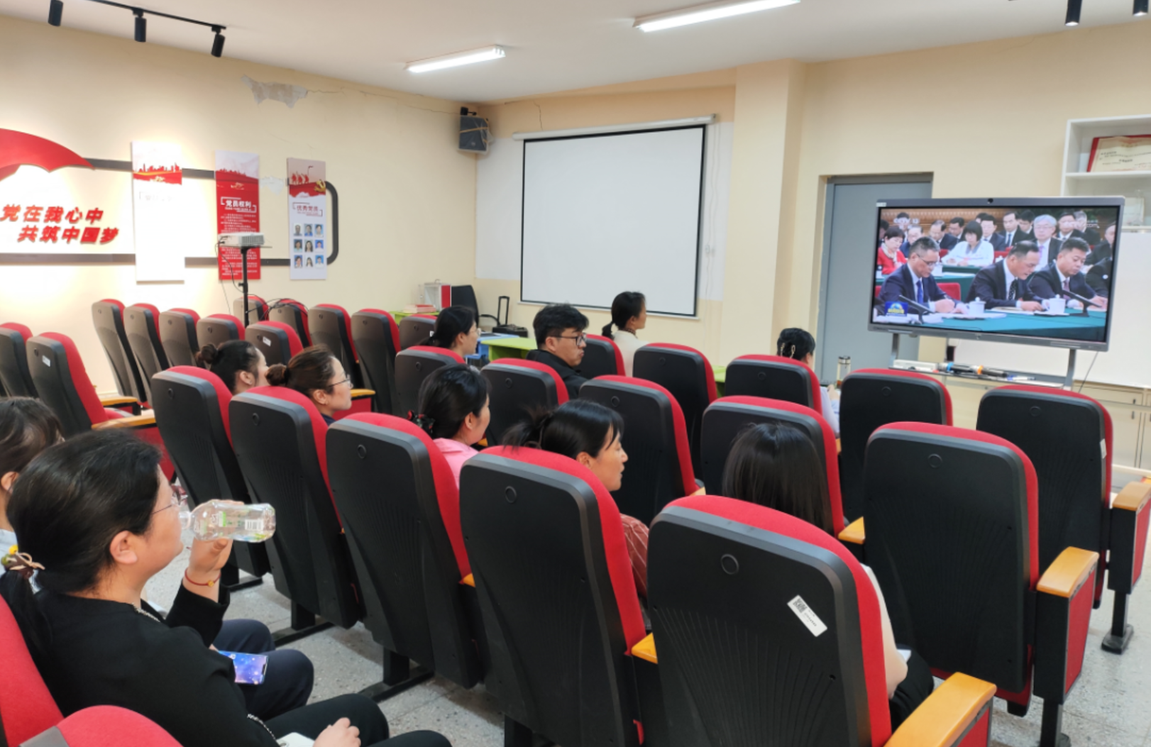 随后教职工们共同观看《习近平在看望参加政协会议的民盟民进教育界委员时强调 强化教育对科技和人才支撑作用 形成人才辈出人尽其才才尽其用生动局面》视频。习近平总书记强调,新时代新征程中,必须深刻洞察中国式现代化对教育、科技、人才的需求,充分发挥教育对科技和人才的支撑功能,营造人才辈出、人尽其才、才尽其用的良好氛围。习近平总书记的重要指示为教育工作者明晰了工作重点,即要以培养德智体美劳全面发展的社会主义建设者和接班人为目标,深化教育综合改革,发挥教育的先导性、基础性支撑作用。
