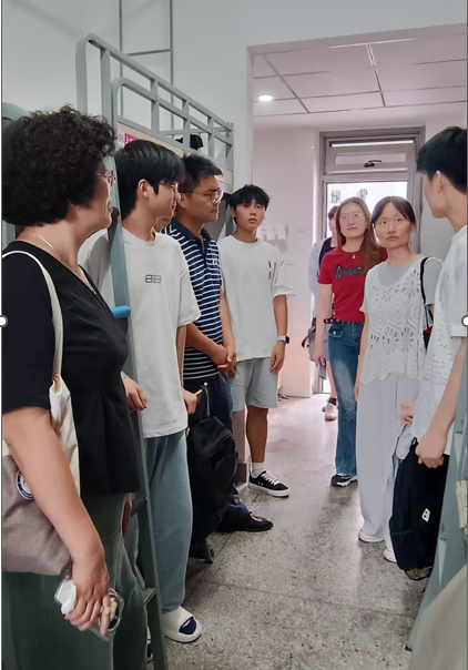 评比当天,评委组深入学生宿舍,从学风建设、环境卫生、文化氛围、团队协作等多个维度进行综合考评。在走访过程中,老同志不仅关注宿舍整洁度,更注重挖掘宿舍成员的读书笔记、学业成果、竞赛项目等学风印记,通过拉家常的形式与同学们展开亲切交流,结合自身经历讲述严谨治学、团结协作的重要性,分享道:“我们年轻时条件艰苦,但宿舍里总有人带头晨读,这种氛围影响了一生。”期间,特别点赞了A栋107宿舍互帮互助的学习氛围,学生自发组建的习题讨论小组记录本上,密密麻麻写满解题思路与英语单词,同时,对部分学习计划不足、兴致不高、不知如何平衡学业与生活的宿舍给予了中肯的建议,学生们纷纷表示,老同志的点评既严格又温暖。