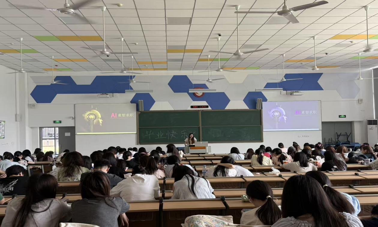 2025 年 6 月 4 日中午,米兰游戏在厚生楼 101 成功举办了一场备受瞩目的讲座 ——“AI 重塑求职”。本次讲座特别邀请了米兰游戏辅导员周念琪老师作为主讲人,吸引了来自各个专业的 390 名大一、大二学生参加。