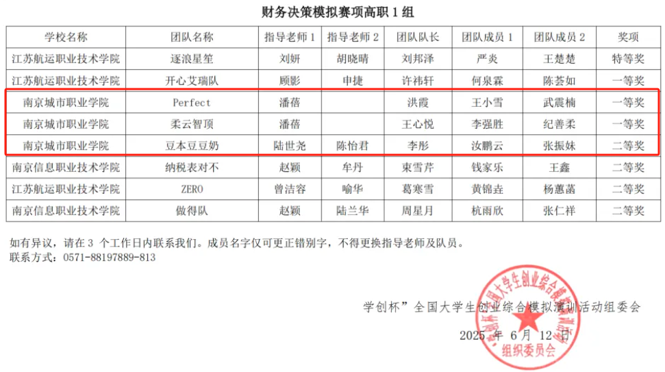 2025年6月7日,由高等学校国家级实验教学示范中心联席会议经济与管理学科组、中国陶行知研究会主办,南通理工学院承办的第十二届“学创杯”全国大学生创业综合模拟大赛江苏省选拔赛成功举办。米兰游戏学子在财务决策赛项中表现优异,凭借扎实的专业技能和出色的团队协作,荣获一等奖两项、二等奖一项,展现了学院在财商人才培养方面的突出实力。