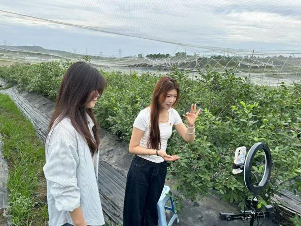 在石头寨村蓝莓种植基地,实践小队成员们跟随村干部的讲解,深入了解蓝莓产业的种植规模、技术难点及市场销路。饱满的果实缀满枝头,队员们沉浸式感受乡村产业发展的蓬勃生机。随后,队员们分组在田间地头架设直播设备,化身“助农主播”,向网友介绍石头寨蓝莓的品种优势、种植工艺及生态价值,直播间内互动热烈。与此同时,另一组队员与当地村民开展面对面访谈,围绕产业发展需求、农产品销售痛点等问题收集调研数据,并结合专业知识整理形成助农方案,为乡村产业升级提供智力支持。